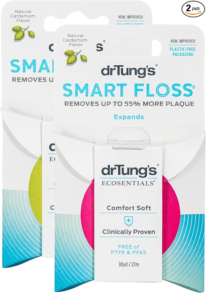 DrTung's Smart Floss - Natural, PTFE & PFAS Free Floss, Gentle on Gums, Expands & Stretches, BPA Free Floss - Natural Dental Floss Cardamom Flavor (Pack of 2)