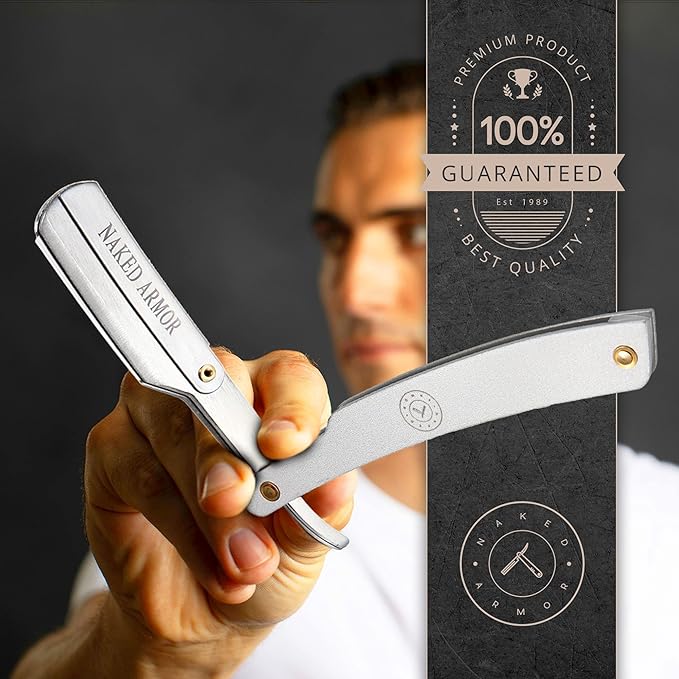 Best Shavette Straight Razor - Replaceable Blade Straight Razor, Metal Handle Shavette, No Stropping or Honing, Great For Beginners, Starter Blade, Hygienic, Close Shave, Leather Case (Silver)