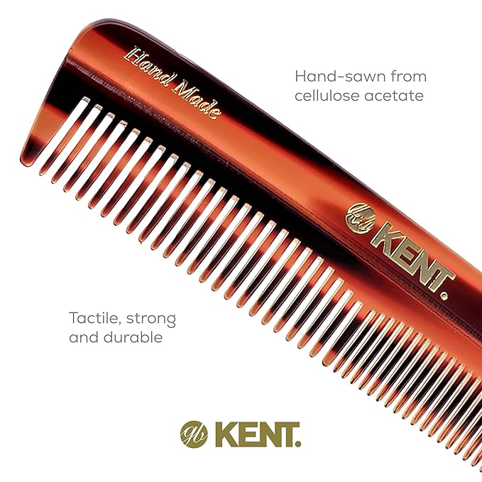 Kent R7T Fine and Wide Tooth Hair Comb, Pocket Comb for Men, Best Beard and Mustache Comb for Everyday Grooming and Styling, Handmade Sawcut and Polished, Made in England