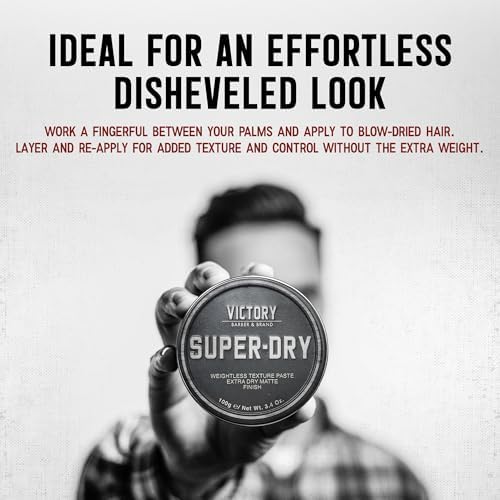 Victory Barber & Brand Super-Dry Men's Hair Paste | Oil-Free Texture Paste for Men with Oil Control, Natural Woodsy Scent, Matte Finish, and Hair Products Usage | 3.1 Ounce