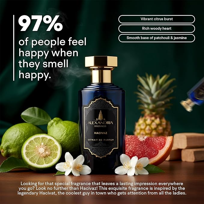 - Citrus Freshness with Bold Sophistication: Hacivaz by Alexandria Fragrances combines citrus brilliance with refined depth. This perfume for men features crisp bergamot, juicy pineapple, and sparkling grapefruit blended with rich woods. Perfect as a men’s cologne or it leaves a lasting impression for work, travel, or evening occasions.