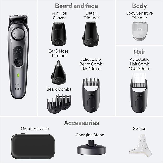 - EFFORTLESS beard, body and hair grooming: incredible results on any hair type, length or thickness with Braun’s innovative AutoSense technology