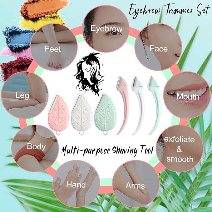 - 👩【Humanized Design】Our razor adopts an ergonomic arc design, which is very convenient and easy to use.Each blade has a protective cover, which is very convenient for travel and storage.Provide you with an excellent eyebrow trimming experience.
