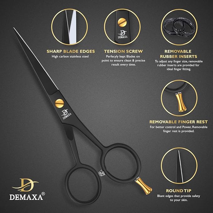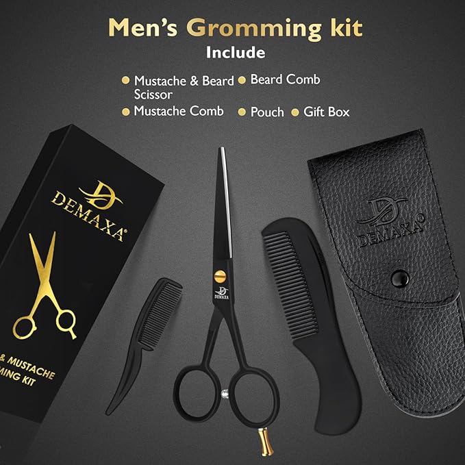 - VERSATILE USES: DEMAXA 5-Inches Grooming Scissors Men are great Hair Cutting Scissors. These Facial Hair Scissors are suitable for cutting beard, mustache, nose hair, ear hair, eyebrows or any other hair in different parts of body.