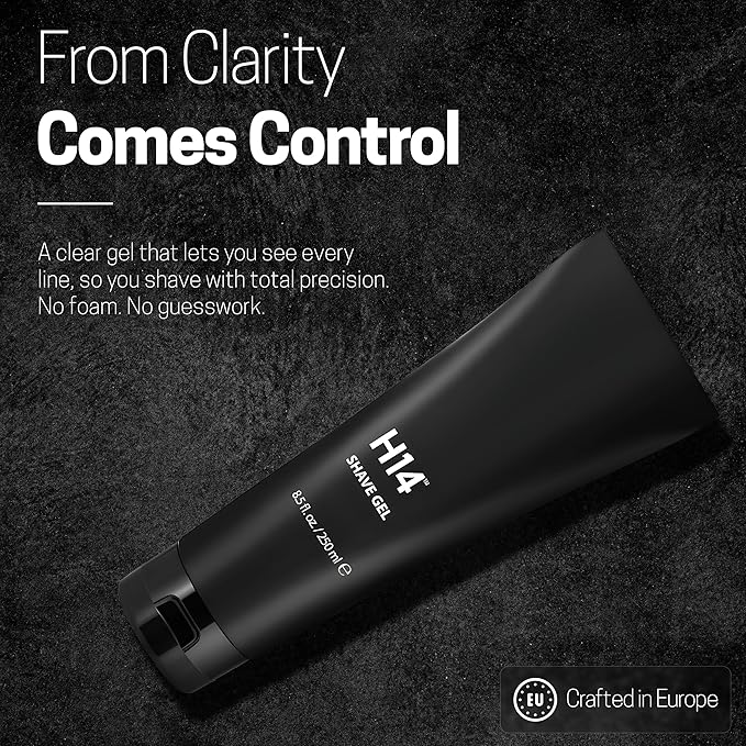 H14 Shave Gel for Men — Clear, Non-Foaming Gel with Glycerin & Panthenol — Soothes Razor Burn for Sensitive Skin — Precision Glide for Beard & Head Shavers — 8.5 fl oz / 250 ml
