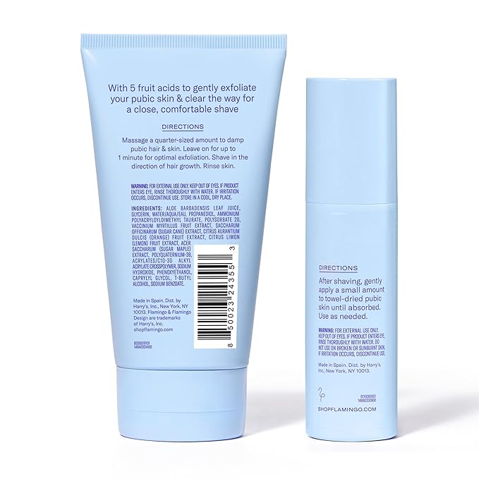 Flamingo Pubic Hair Shaving Skin Care Set, Exfoliating Shaving Gel for Women 5 fl oz with Restorative Post Shave Serum 1.7 fl oz
