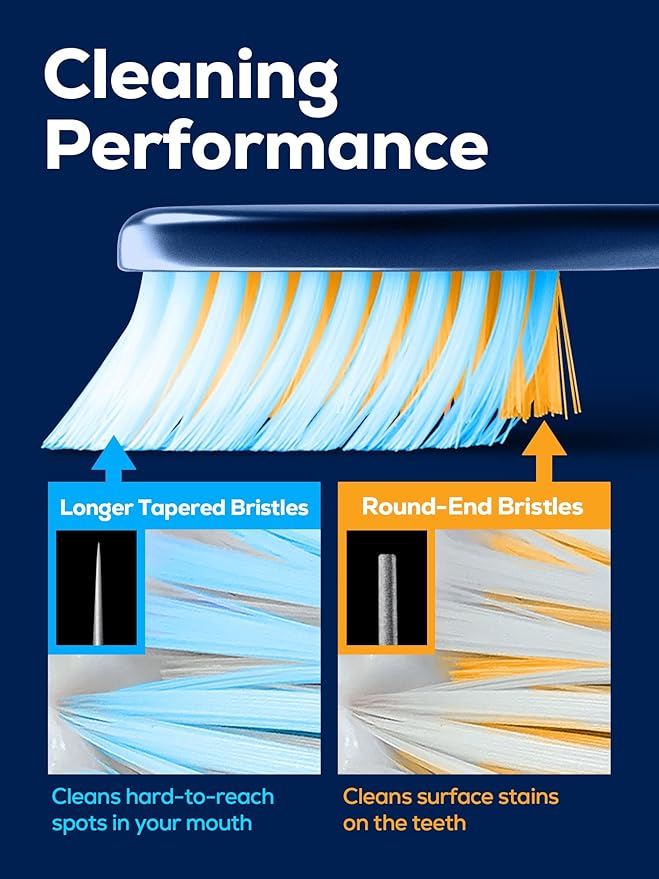 - DEEP CLEANING PERFORMANCE: With advanced micro-nano tapered bristles, our sustainable toothbrush provides a deep clean that reaches between your teeth and along your gum line, areas often missed by traditional brushes. It works efficiently to help plaque and tartar and buildup removal and recede gum issues. This comprehensive cleaning helps maintain optimal oral care. With every brush, you can feel confident that your mouth is clean, giving you the peace of mind that you’re taking care of your smile.