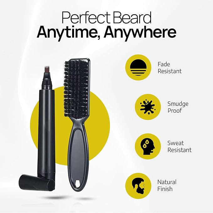 - Fuller and More Symmetrical Look; Shape and Define – Unlock the secret to a fuller, more symmetrical, and impeccably defined beard with our beard filler pen kit. Crafted for the modern man seeking perfection in his grooming routine, our kit is meticulously designed to shape and define your beard game effortlessly. Achieve symmetrical contours with ease, thanks to the ergonomic design and premium bristles of our brush.