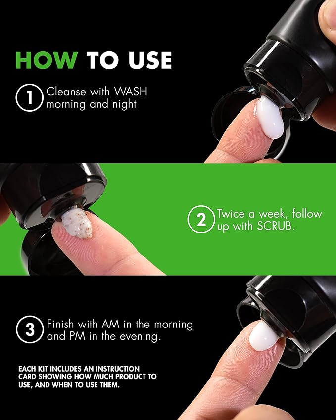 - Men’s Skin Care, Bigger & Better: Get the skincare essentials you already love—now in larger bottles with upgraded packaging. This 90-day supply lasts over 3 months, saving you time and money while keeping your routine simple and effective. Includes Face Wash (5.5 oz), Exfoliating Scrub (2 oz), AM Moisturizer with SPF 20 (2.5 oz), PM Moisturizer (2 oz), and a usage guide for healthy, hydrated skin.