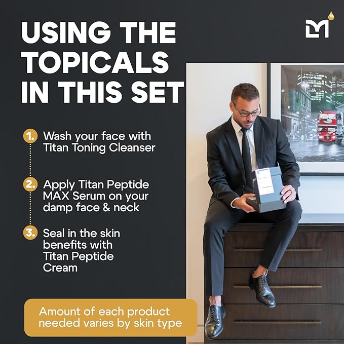 - How Leading Men Looked So Good on Screen: This anti-aging men's face care kit features the Titan Toning Cleanser, Titan Peptide MAX Serum, and Titan Peptide Cream; This is the exact men's skincare kit spotted in celebrity grooming stations at the 2025 Golden Globes