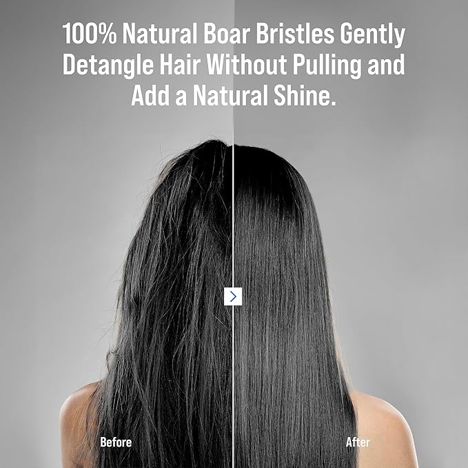 - 1. Natural Boar & Nylon Pins - Features natural boar bristles combined with high-elastic nylon ball pins for optimal brushing. Gently smooths while stimulating the scalp without tugging or scratching.