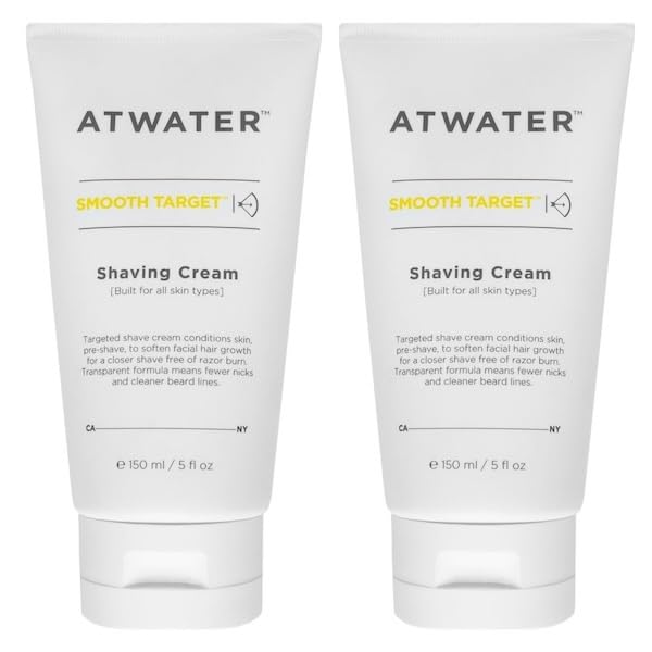ATWATER Smooth Target Shaving Cream, Men's Pre-Shave and Shave Cream in One, Translucent Formula with Rosa Gallica Extract, Nick-Free Protection for Sensitive Skin - 5 oz (2-Pack)