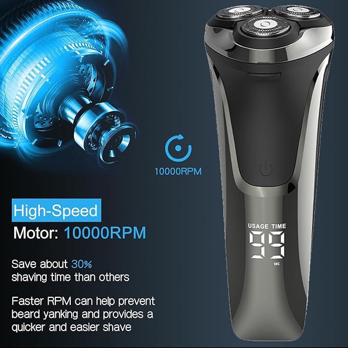 - Powerful & Quiet Motor for Efficient Shaving:The Electric Razor for Men features a powerful yet quiet motor, providing a fast and smooth shave without the noise. Ideal for early mornings or late-night grooming, it helps you achieve a professional-level shave in the comfort of your home