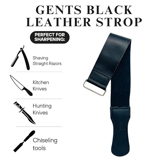 G.B.S Leather Strop 30ml Conditioning Paste Professional Hone and Sharpen your Shaving Razor, blade, knives, cutlery and tools- Leather Balm (Pack of 1 with Black Strop)