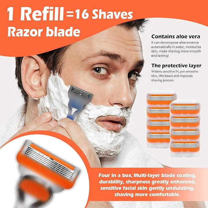 16 Count Razor Blade Shaving Razor Blade Refills for Fusion 5 Style Razor, Mens Shaving Blades Refills-Orange New Version