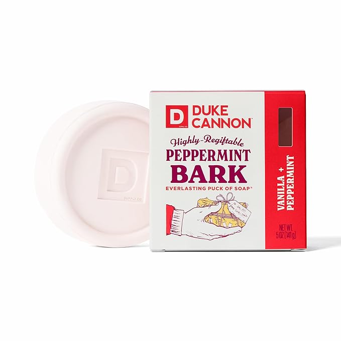 Duke Cannon Holiday Soap for Men, Illegally Cut Pine 2 Pack & Peppermint Bark 2 Pack Scented 5 oz Soap Pucks, Long-Lasting Extra Large Bars for Refreshing Daily Clean